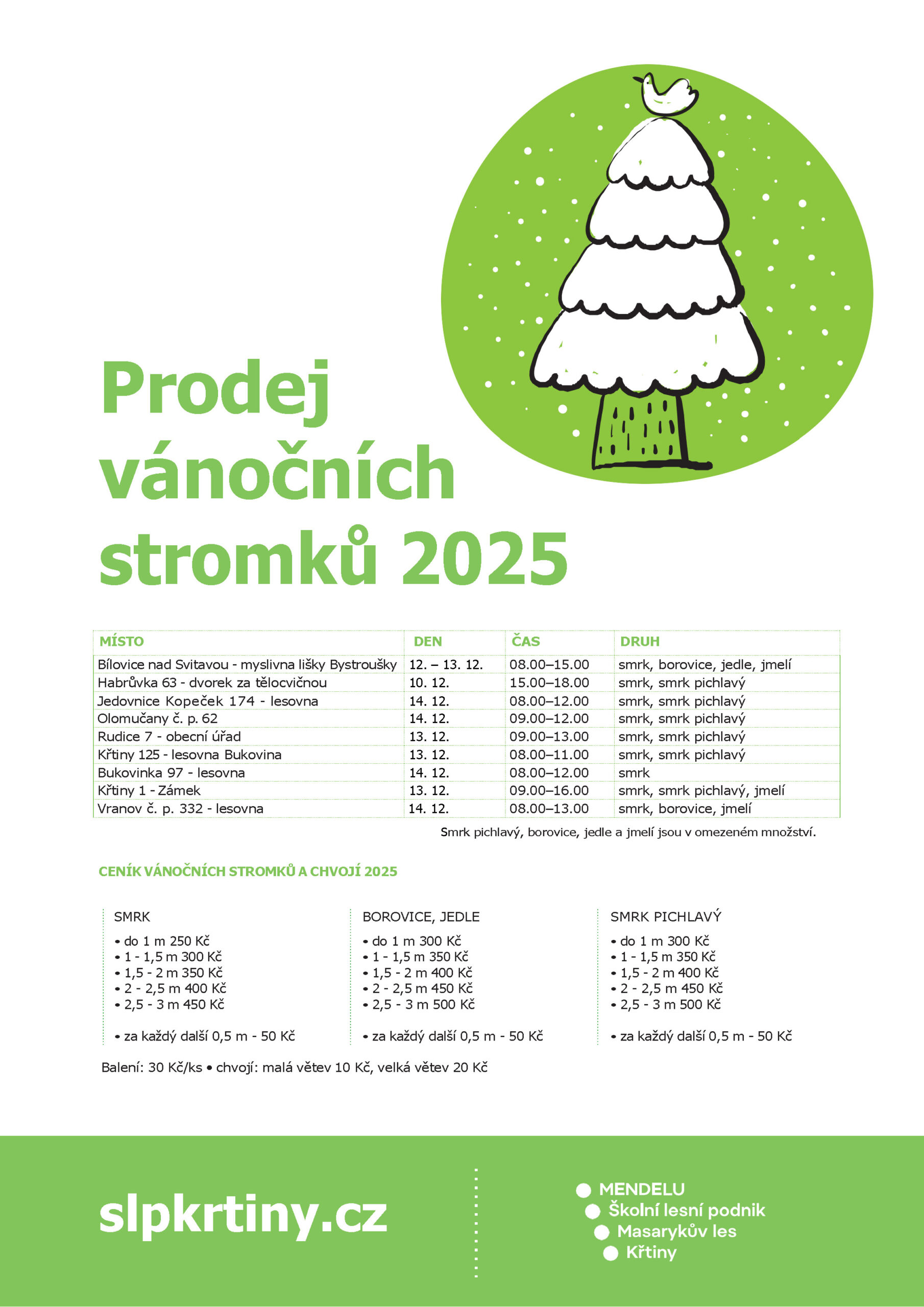 Stromem Brněnských Vánoc 2025 je jedle bělokorá. Strom městu věnuje Školní lesní podnik Masarykův les Křtiny Mendelovy univerzity v Brně (ŠLP Křtiny), který v univerzitních lesích hospodaří. Na cestu do města bude vypraven 15. listopadu již tradičně od Myslivny lišky Bystroušky povozem taženým koňským spřežením. Stáří dvacet metrů vysoké jedle lesníci odhadují na 80 let. Strom věnuje...Číst více