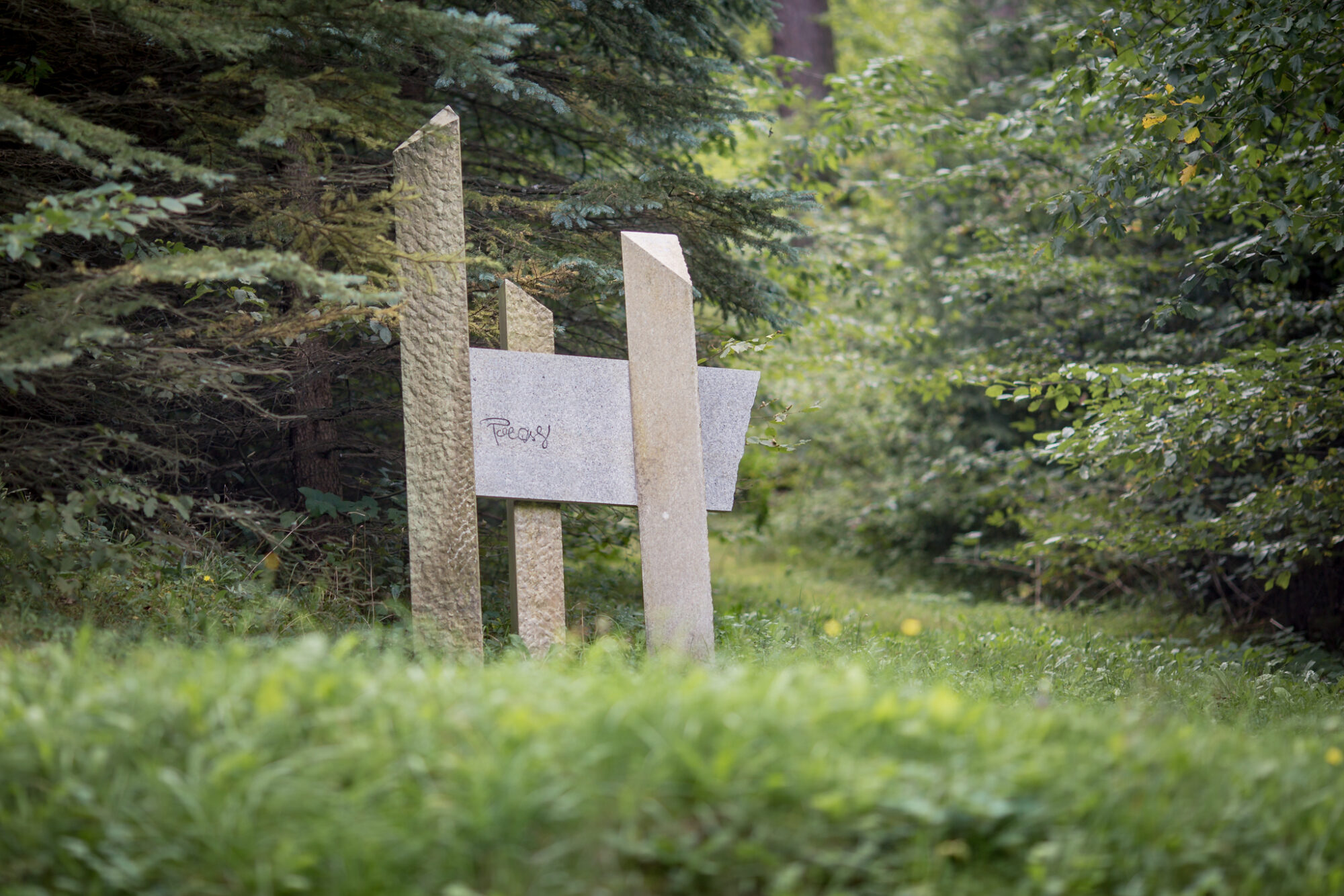 Tři nestejně vysoké kamenné sloupy symbolizují