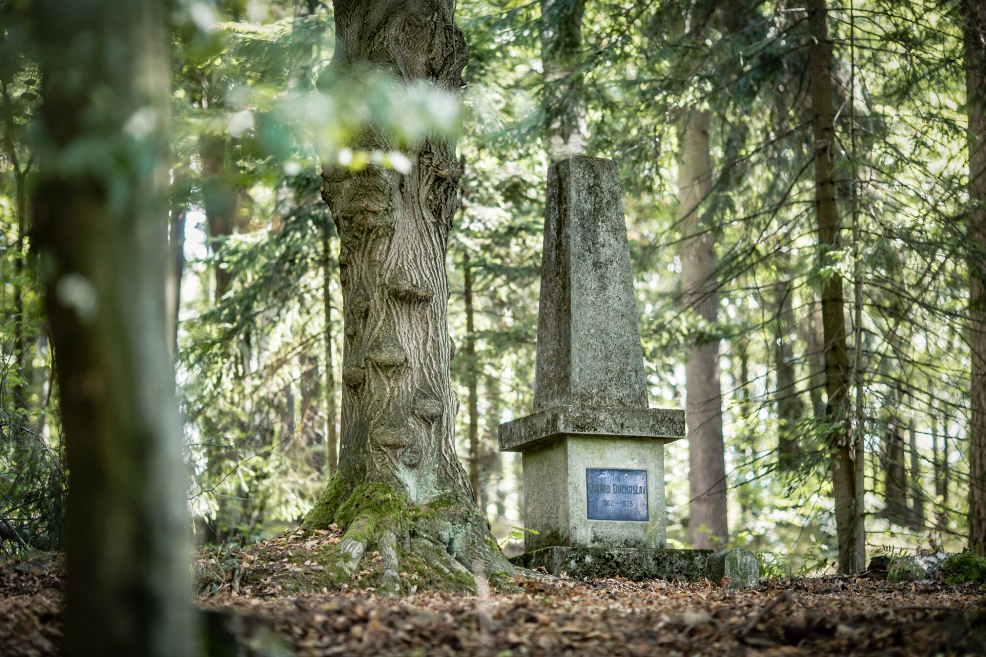 připomíná před památníkem probíhající průsek spolu se zajišťovacím hraničním kamenem. Památníkem je obelisk s pamětní deskou a nápisem na ní: I-ng.