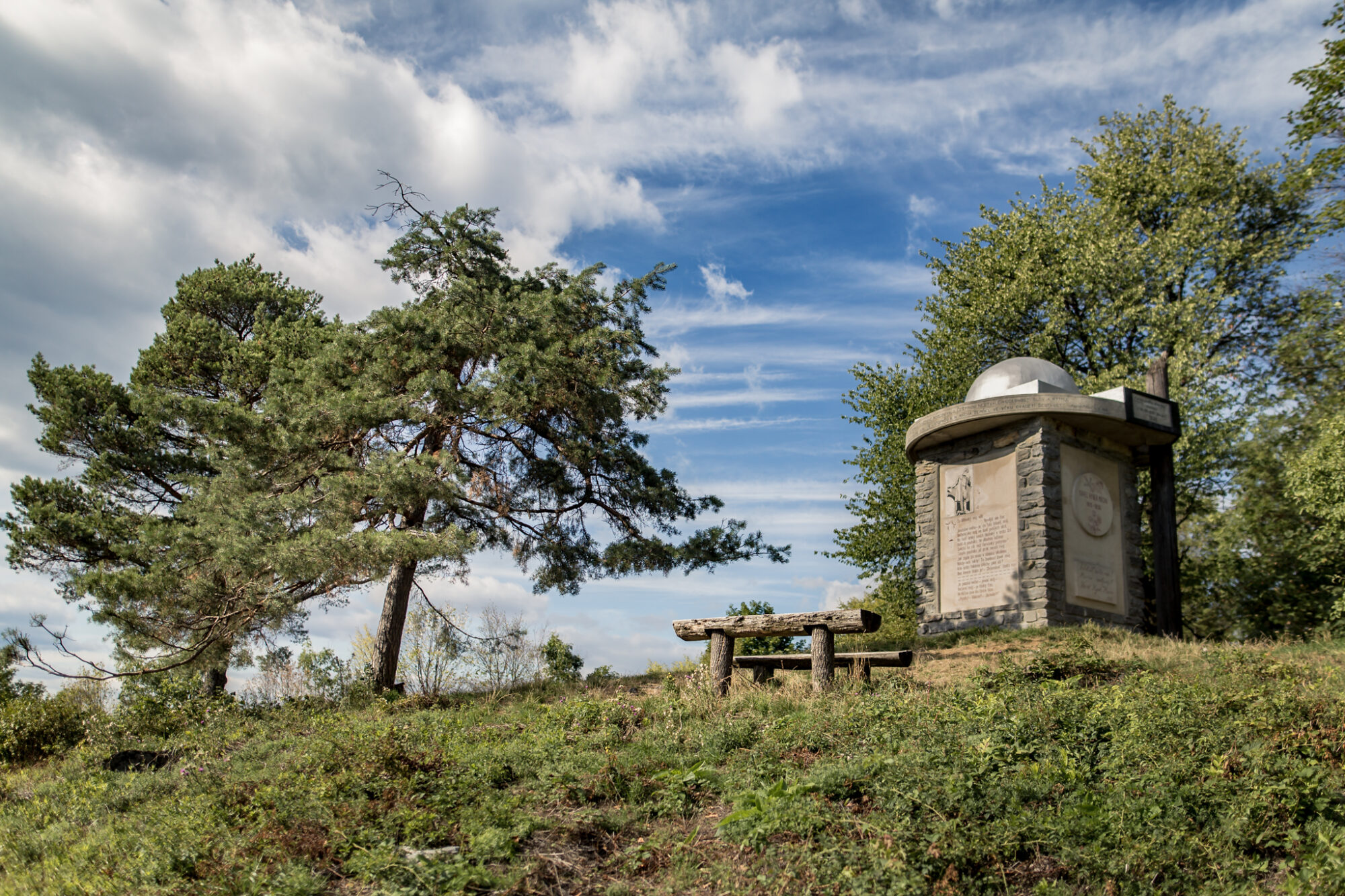 zásad budování Lesnického Slavína byla návrší s dalekou vyhlídkou vybírána pro památníky mimořádně vynikajících osobností, které svou badatelskou