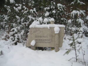 postaven při Skatulově lesní cestě. Tvoří ho mramorová deska vklíněná mezi mramorové sloupky. Tak je znázorněna bystřinná přehrážka,