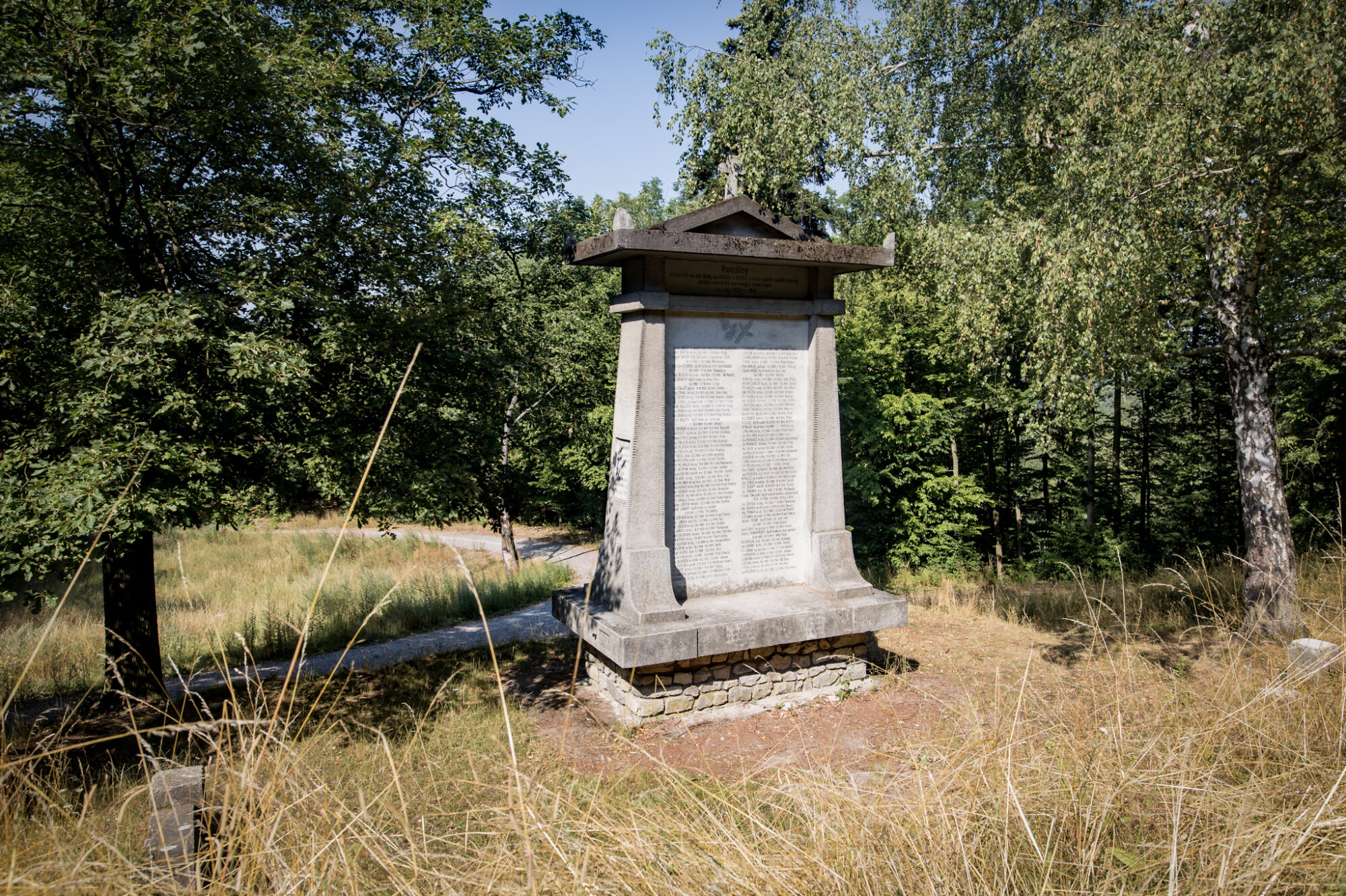 větvičkami lípy a jedle, jsou uvedena jména uctívaných ve dvou sloupcích v abecedním pořadí, kromě posledních pěti dodatečně zjištěných. U každého jména