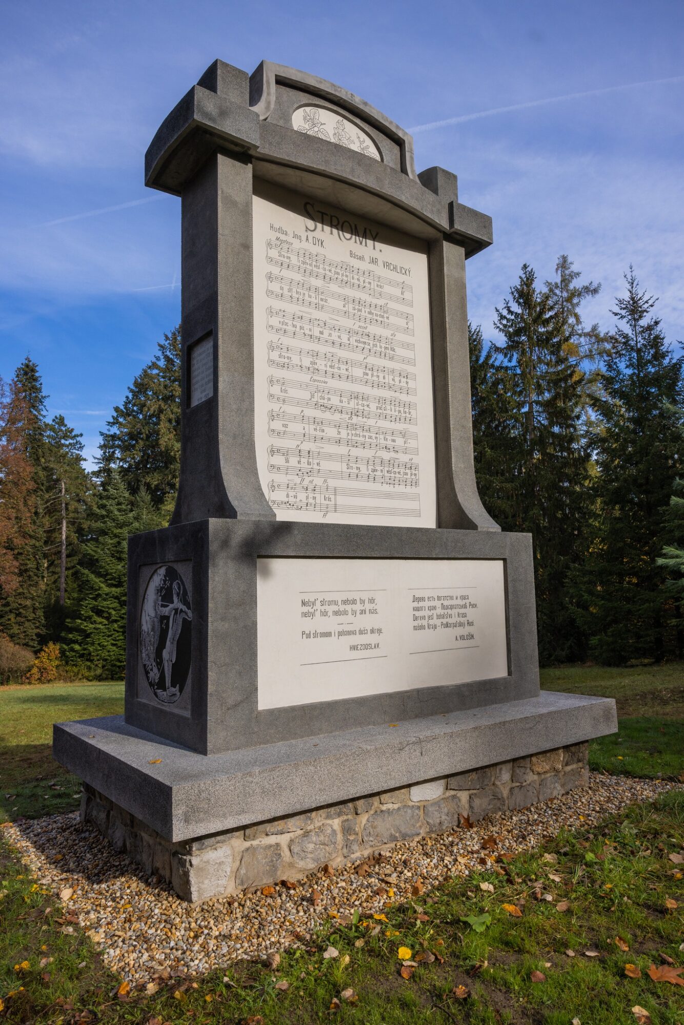 ní skladbu zazpívat. Tato báseň je na památníku pojata