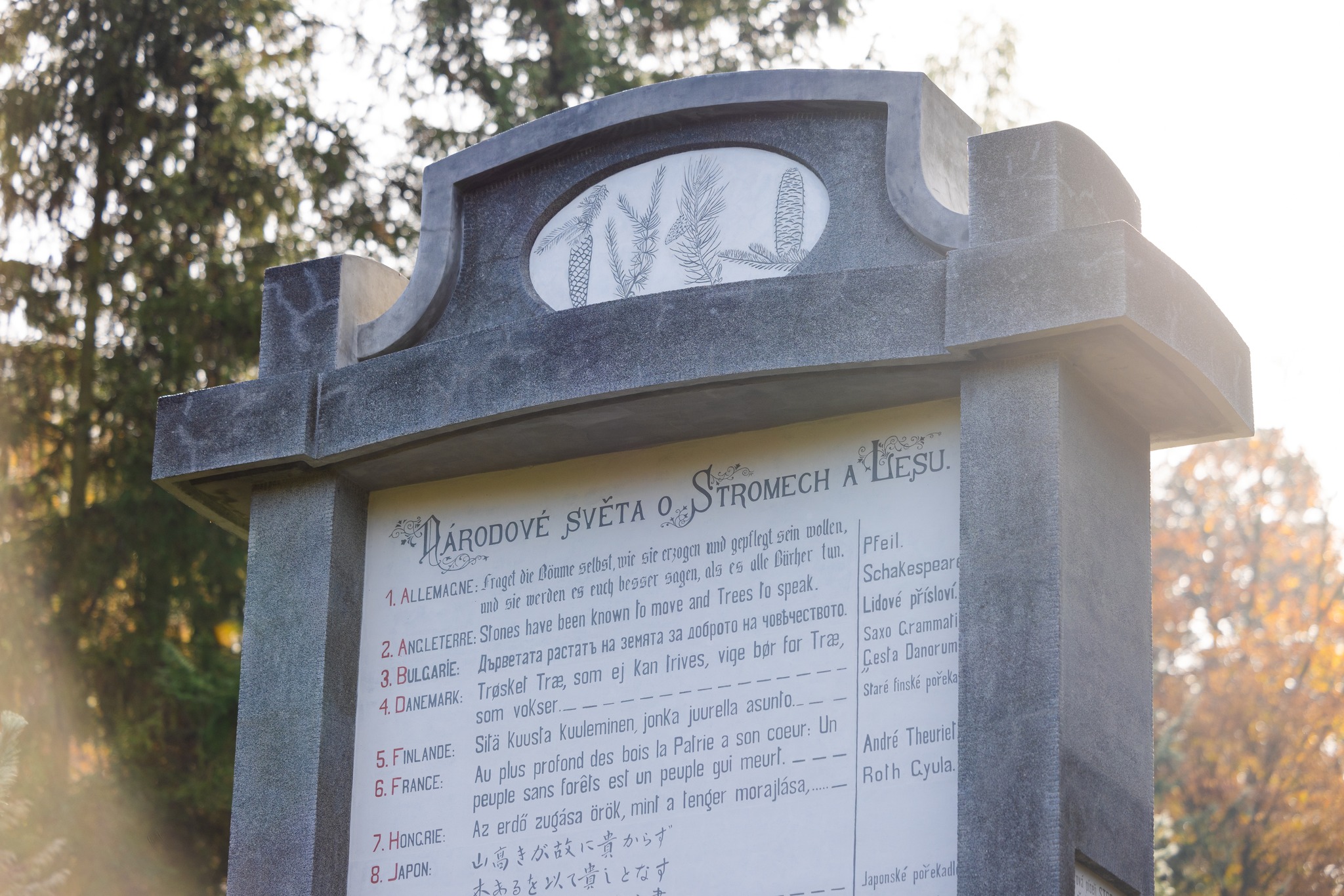 Na jižním průčelí je vyryta báseň Jaroslava Vrchlického Stromy, kterou zhudebnil prof. Antonín Dyk, profesor ochrany lesů a myslivosti na Lesnické fakultě